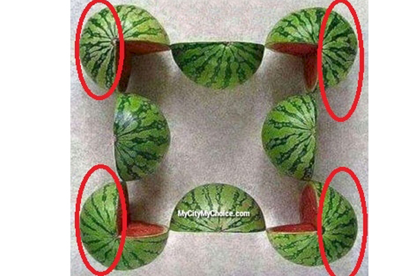 Ez komoly. A kép zavarossá válhat és valóban trükkösnek tűnik, de csak sikerül megszámolnod, hogy hány görögdinnye van.