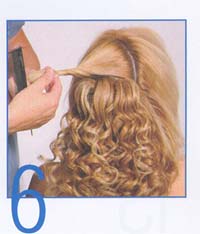 15. Húzzunk ki egy hajtincset hátulról és fésüljük simára. Csavarjuk meg 6-os alakba, és rögzítsük hátul.
