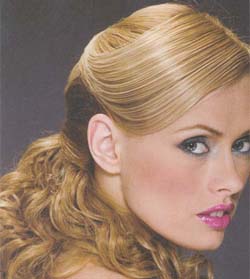13. Fújjuk be hajrögzítővel, majd húzzuk hullámszerű alakzatba hátul jobboldalt. A forma kialakításához használjunk stílfésűt, majd tűzzük le hajtűkkel.